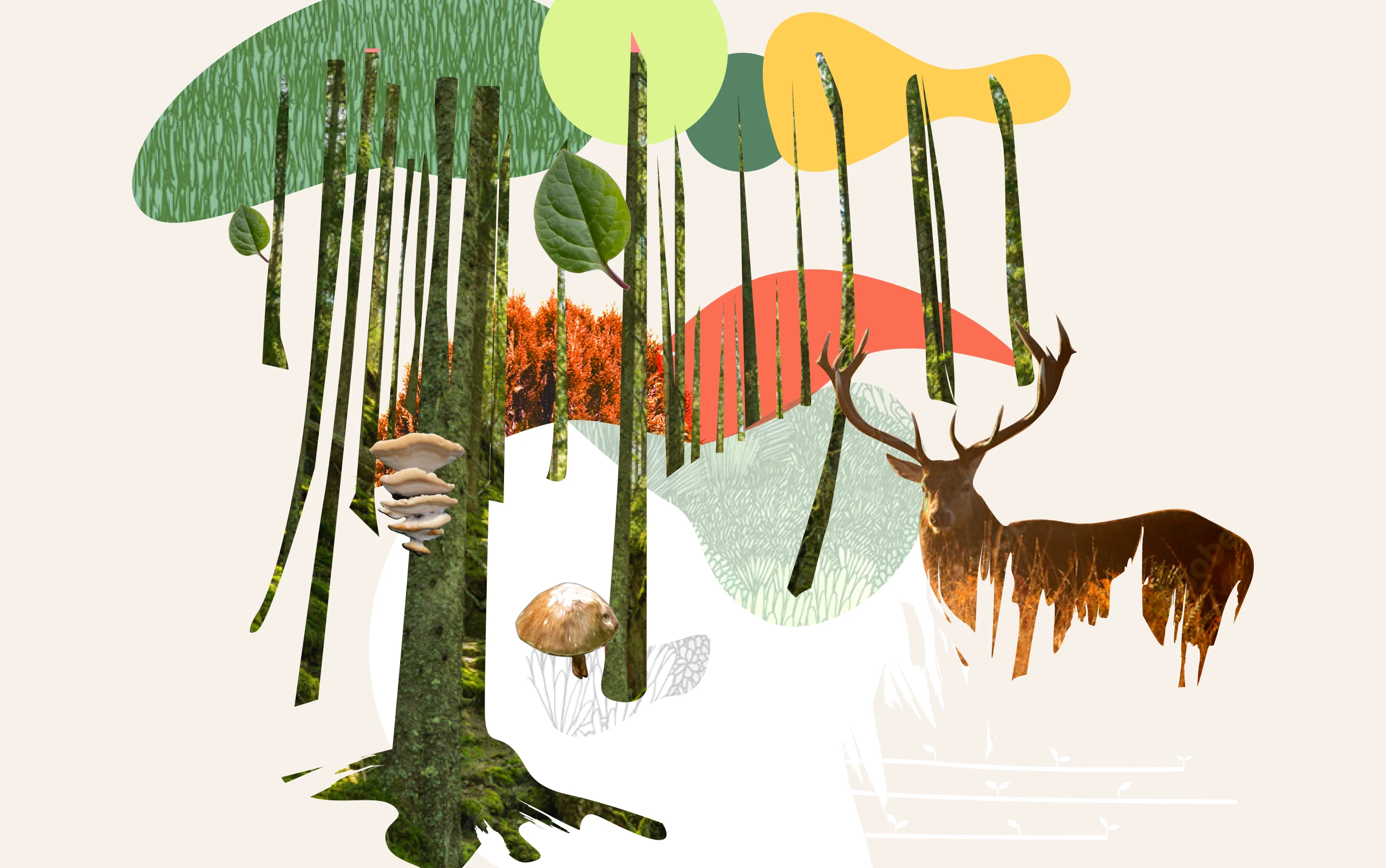 From the start of the project, we opted for a visual approach that evoked forest ecosystems through a collage that symbolized the diversity and complexity of forests. To bring this concept to life, we carefully selected a mix of photographs, textures, and colored shapes that represented the richness of natural landscapes. These graphic elements were consistently used across the site, creating a cohesive and dynamic visual aesthetic that captured the essence of the project.