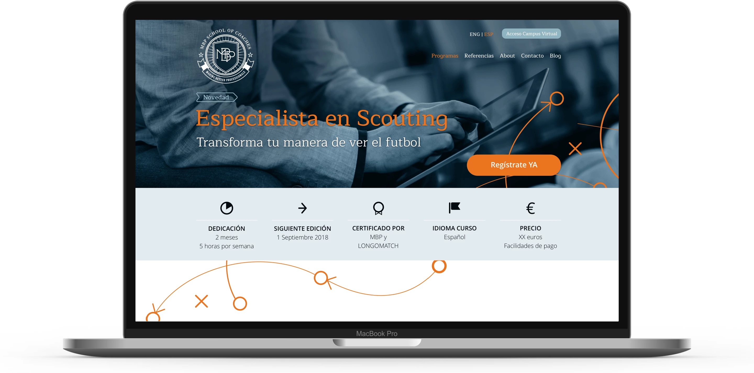 Web MBP School of Coaches, a school of gamified courses for football coaches developed in WordPress, also providing access to online courses.